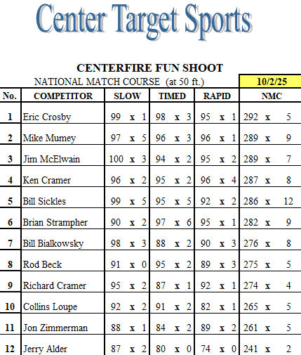 BULLSEYE: BULLSEYE RESULTS FUN SHOOT 10.2.2025