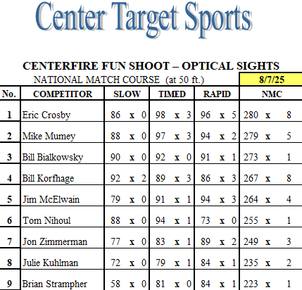 BULLSEYE: BULLSEYE RESULTS FUN SHOOT 8.7.2025