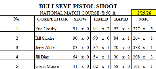 Bullseye: Bullseye Results NMC 50ft 2.19.2026