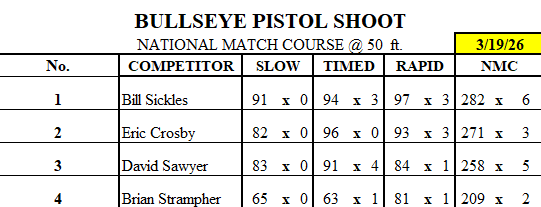 Bullseye: Bullseye Results NMC 50ft 3.19.2026