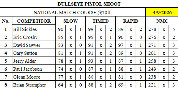Bullseye: Bullseye Results NMC 70ft 4.9.2026